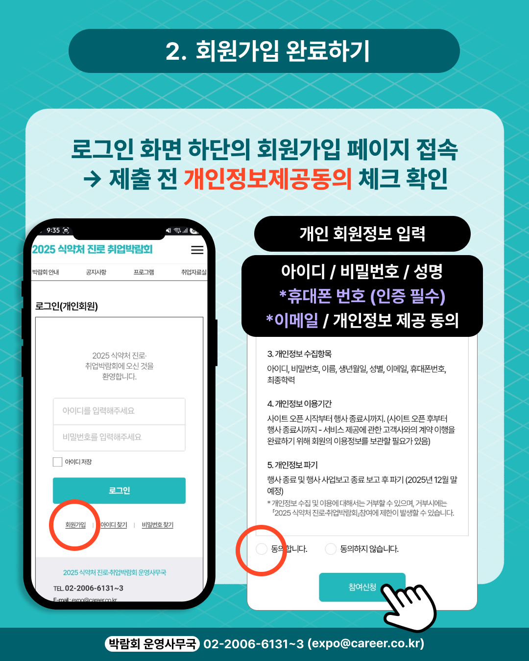 2. '2025 ½Ä¾àó Áø·Î¡¤Ãë¾÷¹Ú¶÷ȸ '´Â 'ÀÌ¿ëÀÚ'°¡ 'º» ¼ºñ½º'¸¦ ¾ÈÀüÇÏ°Ô ÀÌ¿ëÇÒ ¼ö ÀÖµµ·Ï °³ÀÎÁ¤º¸(½Å¿ëÁ¤º¸ Æ÷ÇÔ)º¸È£¸¦ À§ÇÑ º¸¾È½Ã½ºÅÛÀ» °®Ãß¾î¾ß ÇÏ¸ç °³ÀÎÁ¤º¸Ã³¸®¹æÄ§À» °ø½ÃÇϰí ÁؼöÇÕ´Ï´Ù.